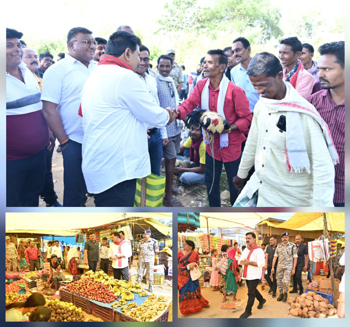 उपमुख्यमंत्री पहुंचे गीदम साप्ताहिक बाजार, ग्रामीणों व व्यापारियों से हाल-चाल पूछे