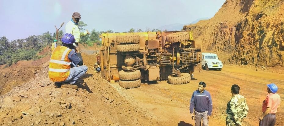 खदान में पुरानी गाड़ी पलटने से कर्मचारी घायल