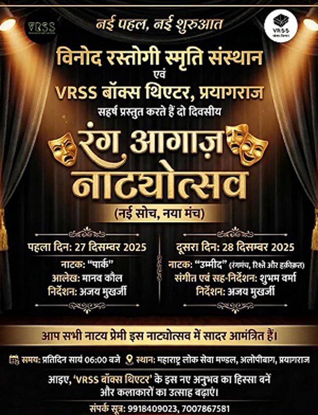 प्रयागराज, 28 दिसम्बर । अक्सर जो दिखता है, सच उससे कहीं अलग होता है। रंगमंच की दुनिया की चमक-दमक के पीछे छुपे अकेलेपन और रिश्तों की नाजुक डोर को उजागर करते हुए नाटक ’उम्मीद’ का भावपूर्ण मंचन रविवार काे वीआरएसएस बॉक्स थिएटर में किया गया। ’रंग आगाज़ नाट्योत्सव’ की श्रृंखला में प्रस्तुत इस नाटक ने दर्शकों को गुरु-शिष्य के रिश्तों के एक नए आयाम से रूबरू कराया।