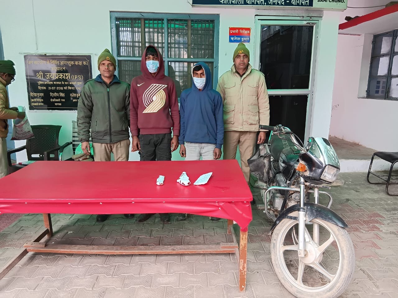 बागपत, 02 जनवरी । उत्तर प्रदेश के बागपत जिले में शहर कोतवाली पुलिस ने शुक्रवार को दो युवकों को चोरी की मोटर साइकिल पर जाते समय गिरफ्तार किया है। आरोपितों के पास से तमंचा कारतूस भी बरामद हुए हैं। पुलिस ने आरोपितों के खिलाफ कानूनी कार्रवाई करते हुए जेल भेज दिया है।
